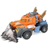 The quest for Energon - a rare and potent substance that the Autobot and Decepticon warriors have battled over for eons - continues on Earth. The Decepticon forces have struck a deal with Unicron: in exchange for new powers and forms, they will supply enough Energon to fully reactivate him. Now legions of hyper-powered Decepticons speed toward Earth, intent on controlling its Energon resources at any cost. Only an elite team of Autobots, empowered with the Spark of Combination, can save the planet from total destruction. The Ultra Landmine changes from a powerful robot into a construction vehicle with a working crane and winch. The rear station converts to a gunnery station. Aim and fire the rockets that make realistic battle sounds. Includes comic book and collector card. Measures approximately 9" long.